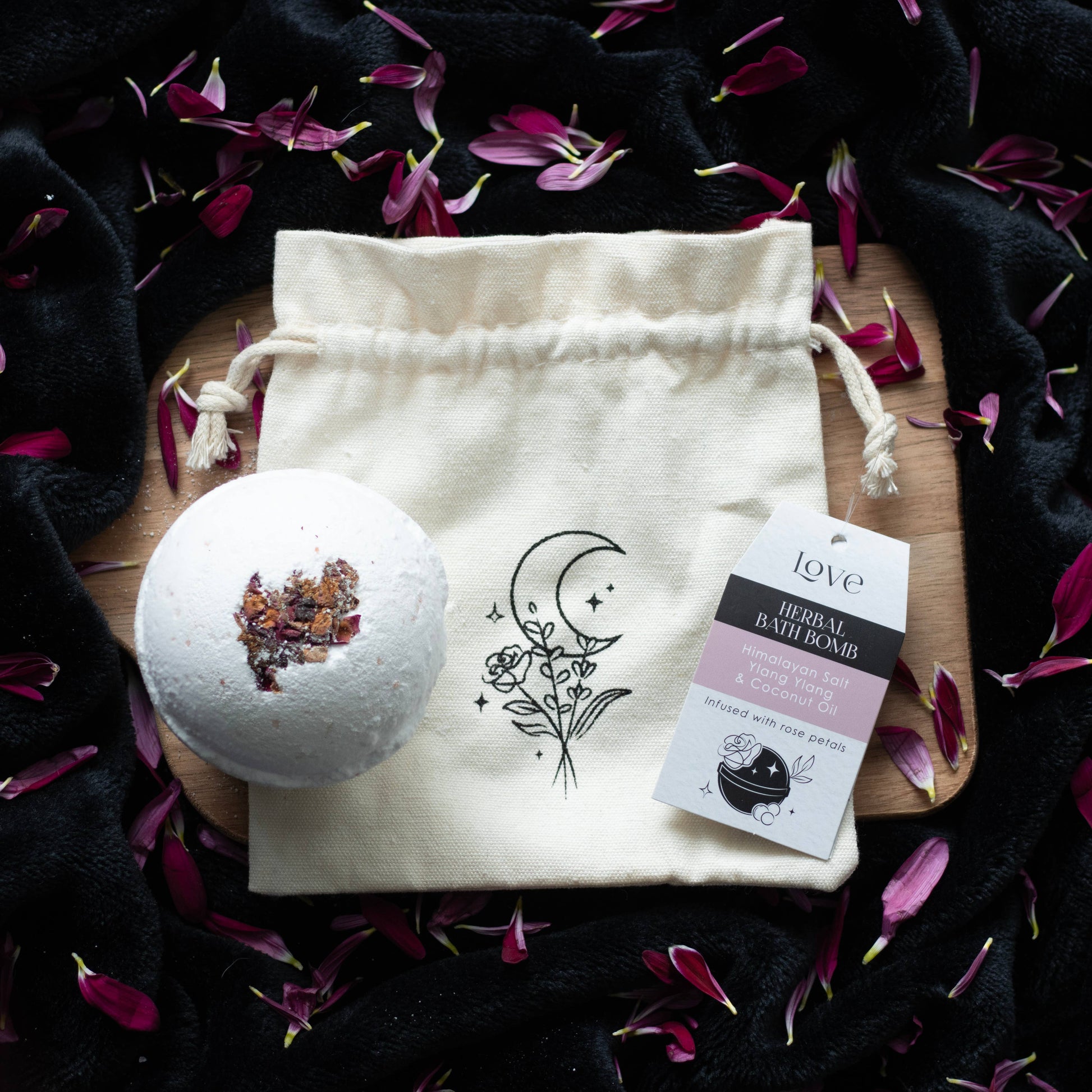 Eine wahrhaft verwöhnende Ergänzung zu einem magischen Baderitual, um Liebe anzuziehen. Diese Kräuterbadebombe „Love“ enthält eine mystische Mischung aus natürlichen Inhaltsstoffen: Himalaya-Salz, Ylang-Ylang und Kokosöl, bekannt für ihre reinigenden und entgiftenden Eigenschaften. Angereichert mit dem zarten Essenz von Rosenblättern, um die Kraft der Liebe und Schönheit hervorzubringen.